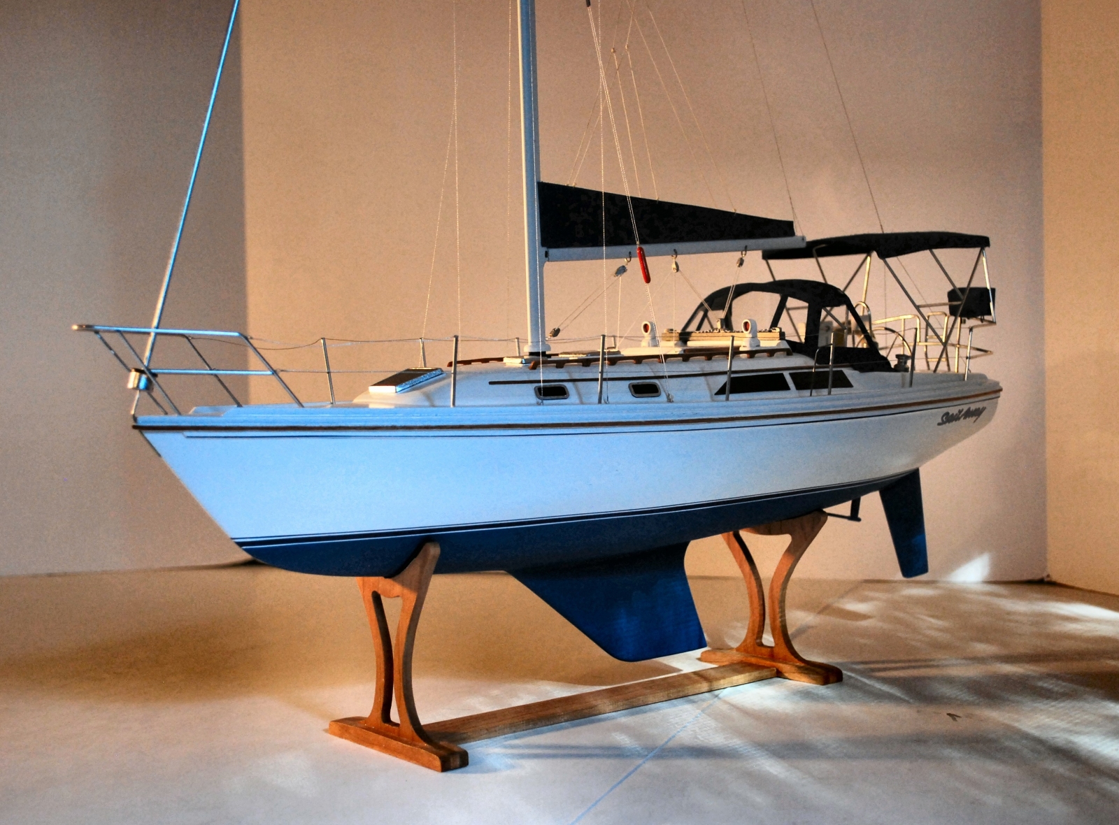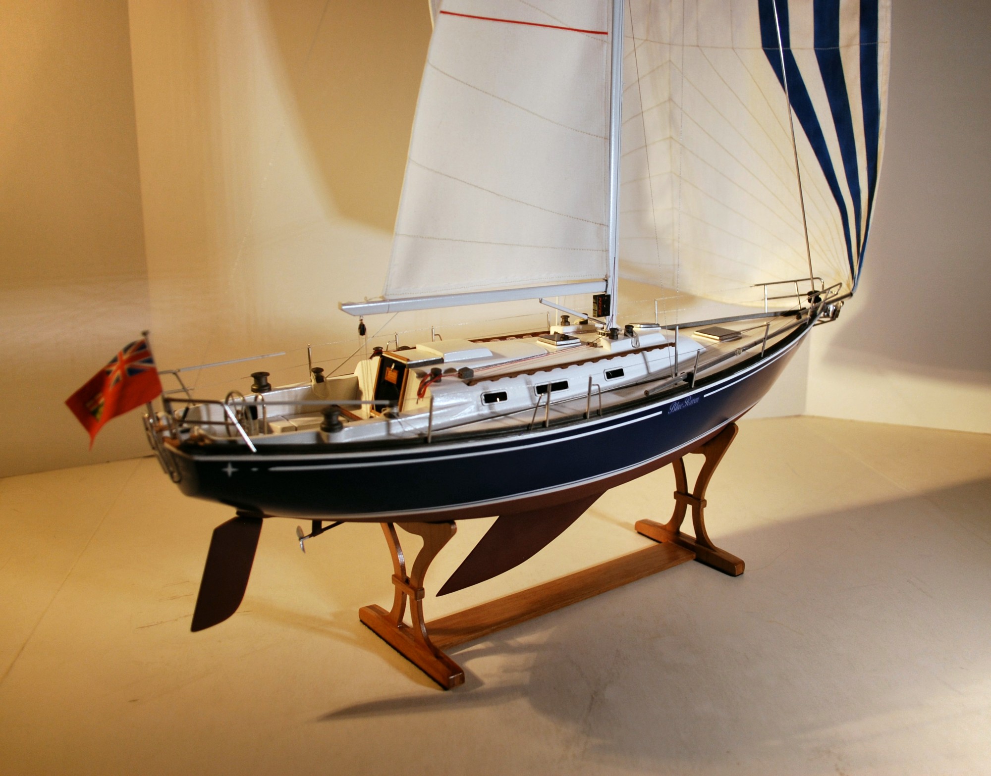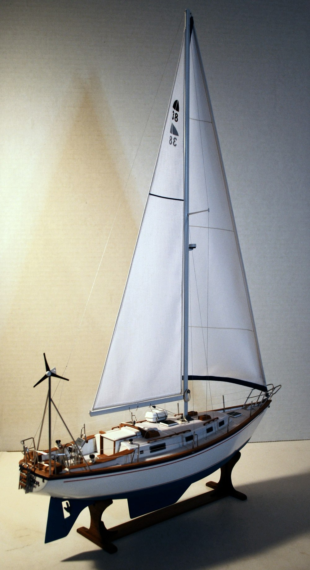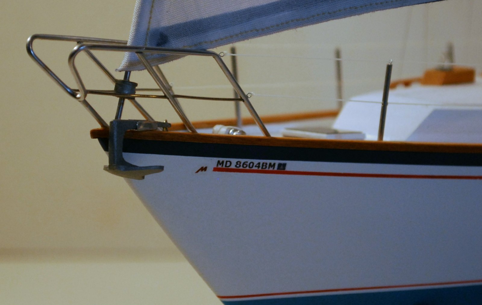 Large image of sailboat model Image of sailboat model helm Full view of model yacht Bow detail of sailboat model